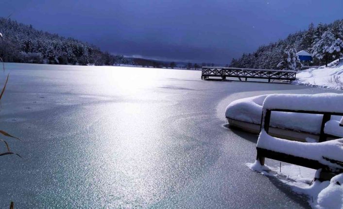 Karabük’ün Eflani ilçesinde kar yağışının ardından etkili olan soğuk hava nedeniyle ilçede yer alan göletlerin yüzeyleri buz tuttu.