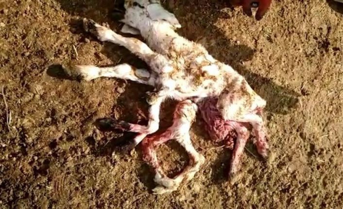 Elazığ’ın Keban ilçesinde sağ doğup daha sonra telef olan 8 ayaklı kuzu görenleri şaşırttı.
