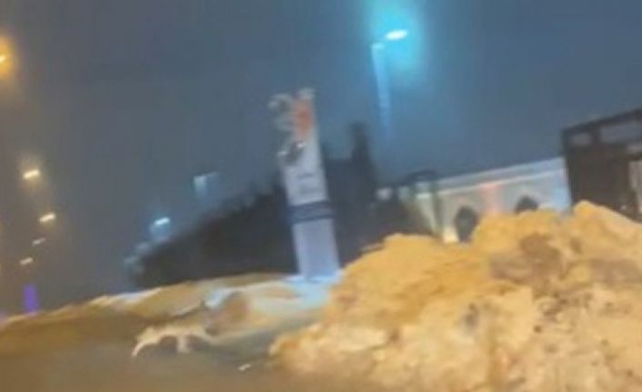 Elazığ’da aç kalan kurt şehir merkezine indi, o anlar sürücünün cep telefonu kamerasına yansıdı.