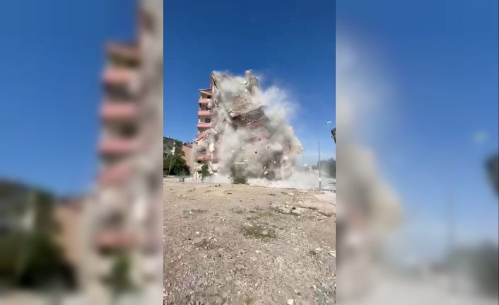 6 Şubat’ta Kahramanmaraş’ta meydana gelen yıkıcı depremlerden etkilenen iller arasından bulunan Elazığ’da ağır hasarlı binaların yıkımı devam ediyor. Bu çerçevede, merkeze bağlı Akpınar Mahallesinde yıkımına başlanan 6 katlı bina, iş makinesinin makasını vurmasıyla bir anda yerle bir oldu. Ortalık toz bulutu ile kaplanırken o anlar cep telefonu kamerasına saniye saniye yansıdı.
