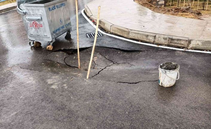 Elazığ’da etkili olan yağışlar karayolunda çökmeye neden oldu.