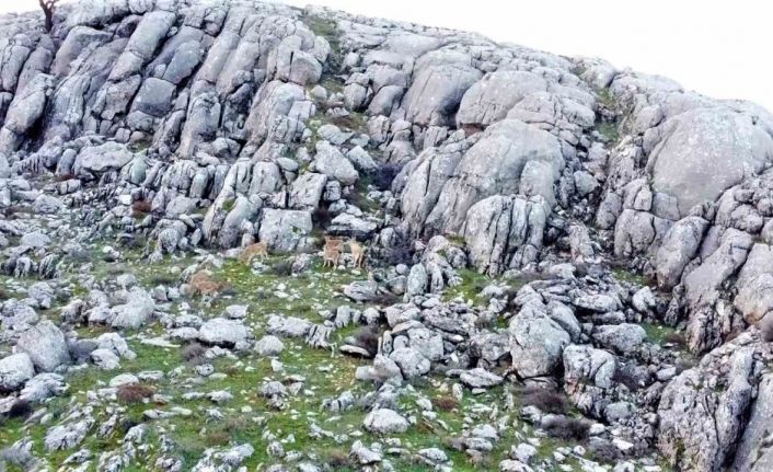 Elazığ’da dağ keçileri sürü halinde görüntülendi