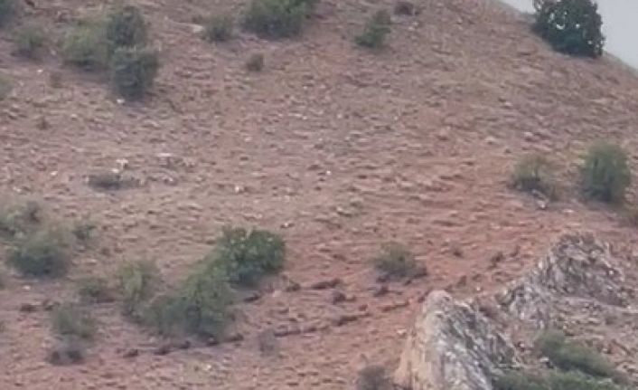 Elazığ’ın Baskil ilçesinin yüksek kesimlerinde domuz sürüsü görüntülendi.
