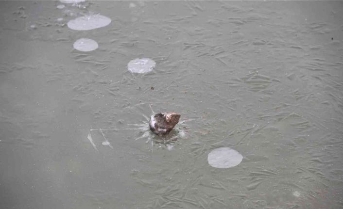 Elazığ’da havuzlar dondu, bayrak buz tuttu