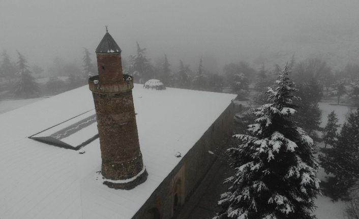 Elazığ’ın tarihi Harput Mahallesi’nde kar ve sis ayrı bir güzellik ortaya çıkardı. Karla kaplı olan Harput Kalesi ve Eğri Minare, sisin de etkisiyle görünmez hale geldi.