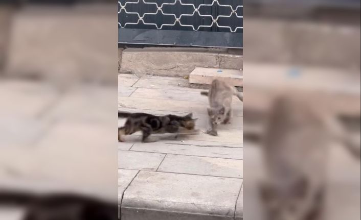 Elazığ merkezde bulunan İstasyon Cadde’sinde, kedilerin fare ile oynadığını gören bir kişi, cep telefonu ile bu anları kaydetmeye başladı. Kedi, kaçmak isteyen fareye izin vermezken, diğer bir kedinin gelmesiyle birlikte fareyi ağzına alıp ortadan kayboldu. O anlar ise bir vatandaşın cep telefonu kamerasına yansıdı.