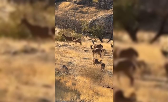 Elazığ’da koruma altında bulunan dağ keçileri sürü halinde görüntülendi.