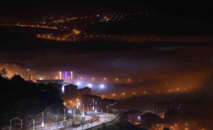 Elazığ kent geneli sis denizinde kaybolurken, sisin gece ışıklarıyla birlikte görünüşü görsel şölen oluşturdu.