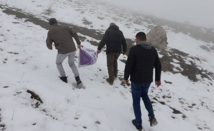 Elazığ’da kış mevsimi nedeniyle yüksek rakımlı bölgelere yaban hayvanları için 450 kilogram yem bırakıldı