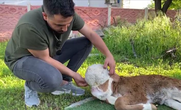 Bir vatandaşın ineği doğum yaptı. Dünyaya gelen buzağının normal olmadığını gören vatandaş durumu veteriner hekim Hikmet Biçer’e iletti. Bölgeye gelen veteriner hekim Biçer, yeni doğan buzağının gözlerinin olmadığını ve kafatası oluşumunun tamamlanmadığını gördü. Bu tür bir doğumun çok nadir görüldüğünü ifade eden Biçer, "Bu bir doğum anomalisi. Bu bazen genetik bir hastalığın sonucunda oluyor. Çok nadir görülen bir durum. Kafatası oluşumu olmamış, beyni derinin altında. İki gözü de yok. Burun kısmi bir şekilde oluşmuş. Ağzı var ama çene yapısı güçlü değil. Bu tür durumlarda buzağının yaşama şansı fazla yok. Çünkü çene yapısı oluşmadığı için beslenemez. İlk defa böyle bir durumla karşılaştım" dedi.