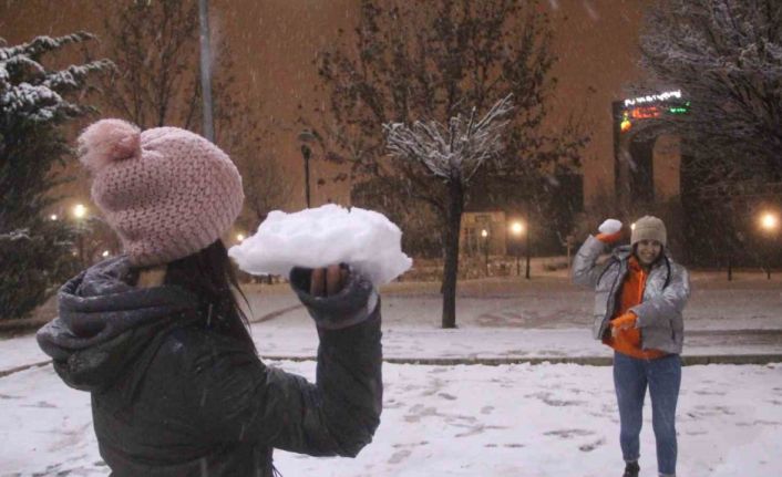 Elazığ’da etkisini gösteren kar, şehri beyaza bürüdü. Uzun süredir bu anı bekleyen vatandaşlar, kartopu oynayarak ve kar altında yürüyerek keyfini çıkardı.