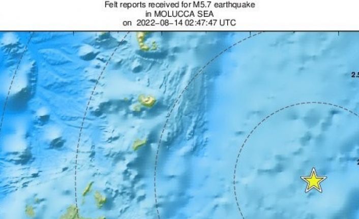 ABD Jeolojik Araştırma Merkezi (USGS), Endonezya’nın Kuzey Sulawesi eyaletine bağlı Laikit kasabasından yaklaşık 158 kilometre uzaklıkta 5,7 büyüklüğünde deprem meydana geldiğini açıkladı. Depremin denizin yaklaşık 30 kilometre derinlikte meydana geldiği belirtildi.