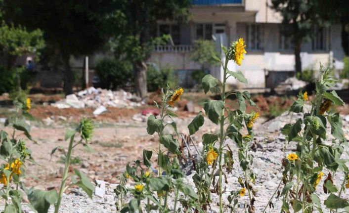 Kahramanmaraş’ta 6 Şubat tarihinde meydana gelen depremlerde Azerbaycan Bulvarı’ndaki Serap Apartmanı da yıkıldı. Apartmanın altında bulunan bir kuruyemişçi ve içindeki ürünler de enkaz altında kaldı. Enkaz altında kalan ay çekirdekleri ise depremin üzerinden geçen 4 ay sonrasınra önce filizlendi, daha sonra boy vererek çiçek açtı.