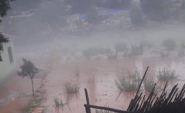 Mersin’in Erdemli ilçesi kırsalında etkili olan dolu ve sağanak yağış sonrası oluşan sel bahçelere zarar verdi.