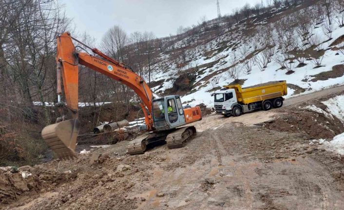 Sakarya’nın Akyazı ilçesinde kar sularının erimeye başlamasıyla birlikte heyelan meydana geldi. Heyelan neticesinde ulaşım sağlanan yol yıkılırken, bir otobüs durağı da toprak altında kaldı.