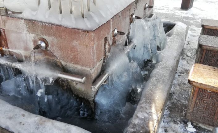Erzurum’da duvarlar ve şadırvanlar buz tuttu
