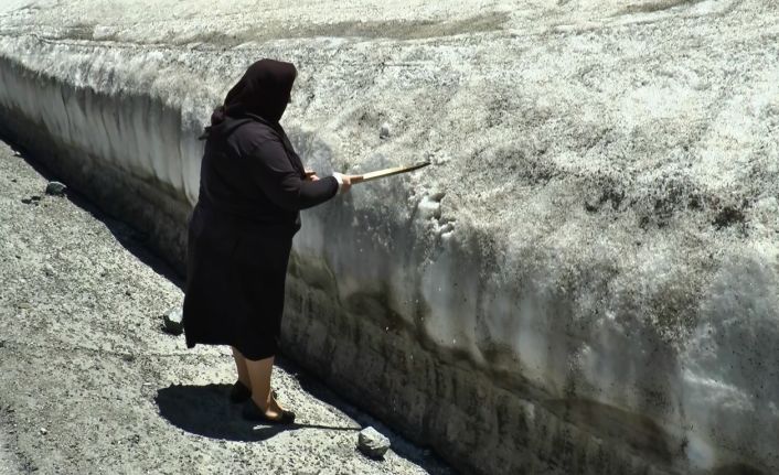 3 bin 200 rakımda temiz havanın ve doğanın tadını çıkartan vatandaşlar, sıcak havaya rağmen haziran ayında ilk kez bu kadar büyük kar kütleleri gördüklerini ifade ediyor.