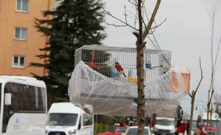 Esnafın evcil kuş hava alsın diye bulduğu çözüm gülümsetti