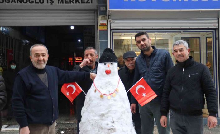 Kent merkezi Dabakhane Mahallesi Tenzile Sokakta yaşanan olayda karın bereket olduğunu belirten esnaflar, kar yılının var yılı olduğu kaydederek kar topu oynayıp gönüllerince eğlenirken, bir kuyumcu esnafı ise yapılan kardan adama beşi bir yerde taktı.