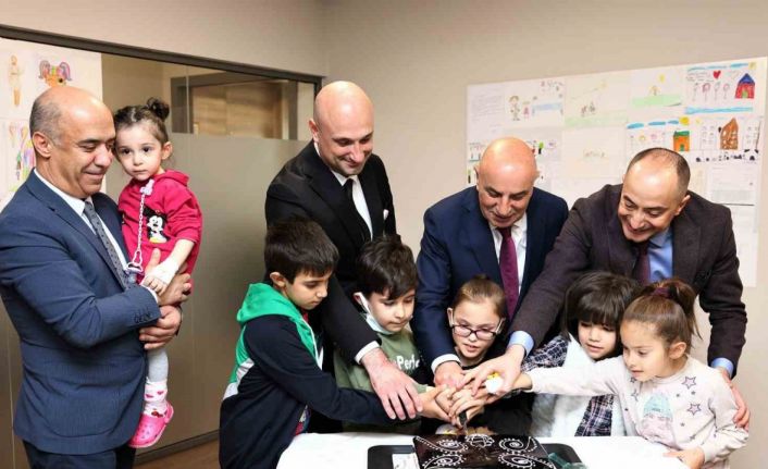 Başkan Altınok ve beraberindeki heyet daha sonra çocuklarla birlikte pasta kesti.