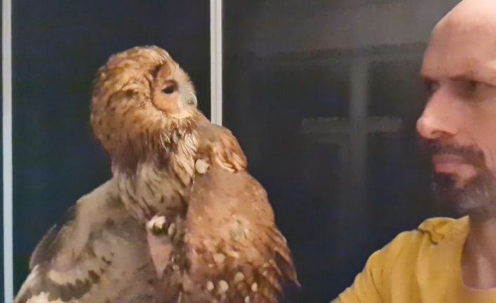 Artvin’de evinin penceresinden içeri giren baykuşu gören Osman Demir önce sevdi daha sonra yeniden doğaya bıraktı.
