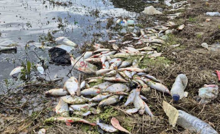 İstanbul’un Eyüpsultan ilçesi Pirinççi Mahallesi’nde gölette yaşanan yosun patlaması nedeniyle çok sayıda balık telef oldu. Ölü balıklar kıyıya vurdu.