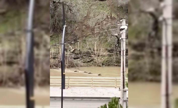 Kayabaşı ve Soğuksu mahallelerinin ortasından geçen Filyos Çayı’na inen yaban domuzu sürüsü, bir süre çevreyi kontrol ettikten sonra suya girdi. Sürü halinde çaya giren domuzlar, akıntıya rağmen yüzerek karşı kıyıya geçmeyi başardı. Düzenli ve sakin şekilde karşıya geçen yaban domuzu sürüsü, bir süre Çay kenarında ilerledikten sonra Soğuksu Mahallesi yönünde gözden kayboldu. O anları çevredeki bir vatandaş cep telefonu kamerasıyla kayda aldı.