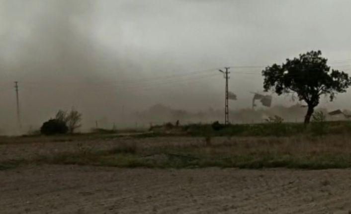 Elazığ’da kuvvetli rüzgar ve fırtına kısa süreli etkili oldu, bazı bölgelerde toz bulutları oluşurken, bazı binaların çatı ve dış yalıtımları da uçtu.