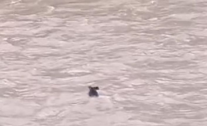 Fırtınanın çaya sürüklediği yaban domuzu hayatta kalmayı başardı