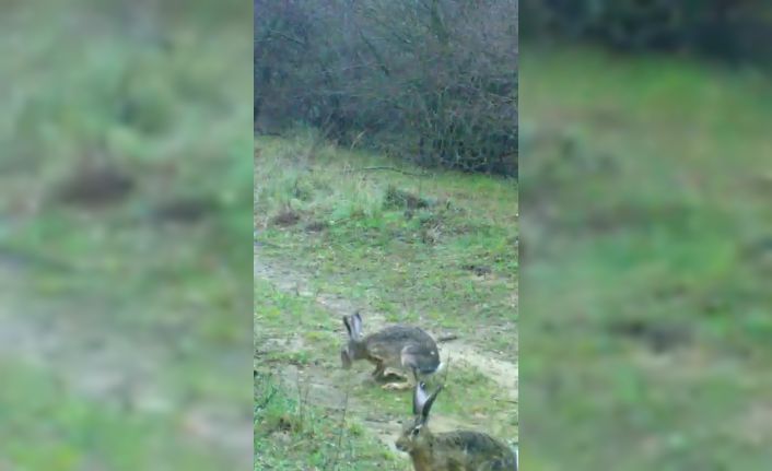 Edirne’de fotokapanlar, bu kez iki yaban tavşanını görüntüledi.