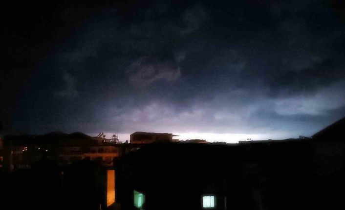 Balıkesir’in Sındırgı ilçesinde gece saatlerinde başlayan lodos, yağmurla birlikte etkisini arttırdı. Ardı ardına çakan şimşekler ise gecenin karanlığını aydınlattı. Korku filmlerini aratmayan görüntüler cep telefonuna yansıdı.