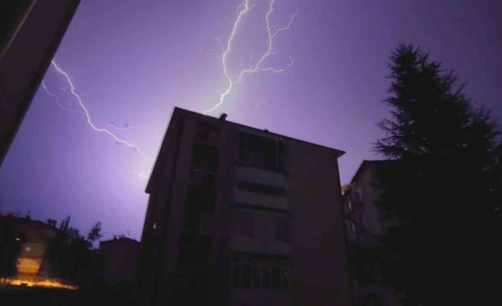 Karabük’te gece saatlerinden itibaren etkili olan sağanak yağmur öncesi gök gürültüsüyle birlikte çakan şimşekler görsel şölen oluşturdu.