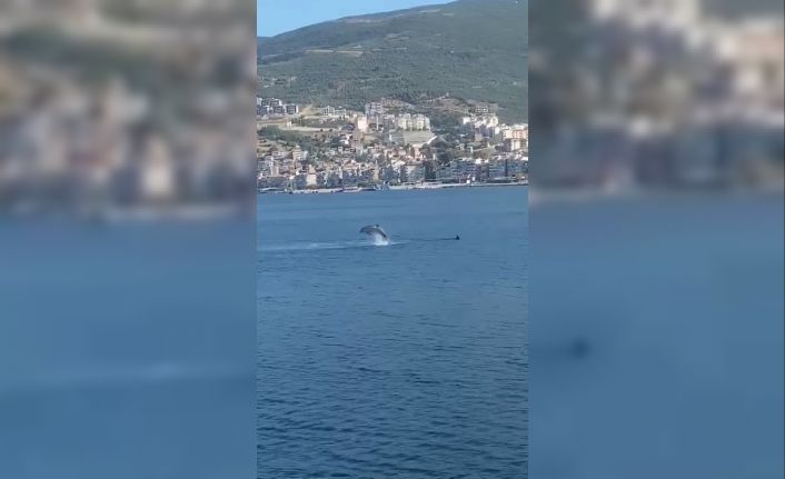 Bursa’nın Gemlik ilçesinde yunus balıkları denizde adeta gösteri yaptı.