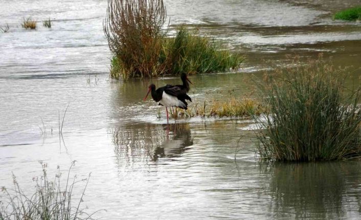 Türkiye’de nadir olarak görülen ve şimdilerde göç yolunda olması gereken kara leylekler Kızılırmak üzerinde görüntülendi.