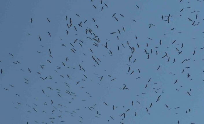 Türkiye’den Afrika’ya göç eden leylekler Bursa semalarında görsel şölen oluşturdu.