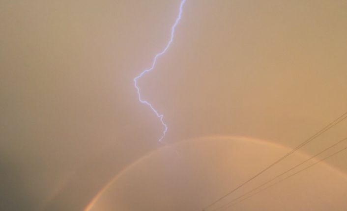 ABD’nin Iowa eyaletinde gökkuşağına yıldırım çarptığı anlar anbean kayıt altına alındı.