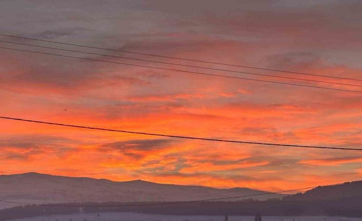Ardahan’da gün doğumuyla kızıla bürünen gökyüzü görsel şölen oluşturdu.