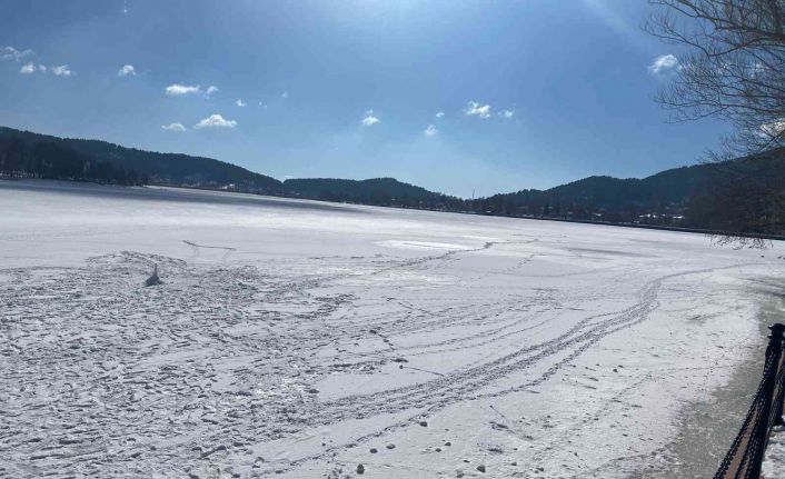 İzmir’in Ödemiş ilçesindeki Gölcük Gölü, hava sıcaklığının sıfırın altına düşmesi ile birlikte tamamen buzla kaplandı, ortaya kartpostallık görüntüler çıktı.