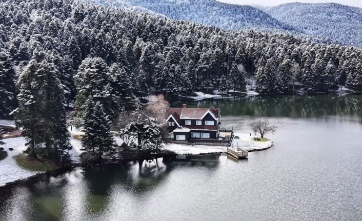 Dron ile havadan kaydedilen görüntülerde, karla örtülü ağaçlar, gölet çevresi ve Devlet Konukevi’nin beyaz örtüyle uyumu dikkat çekti. Her mevsim yerli ve yabancı turistlerin uğrak noktası olan Gölcük Tabiat Parkı, kış aylarında da doğa ve fotoğraf tutkunlarının ilgisini çekmeye devam ediyor.