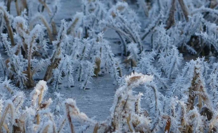 Göle ilçesinde kırağı nedeniyle beyaza bürünen ağaç ve bitkiler ise güzel görüntüler oluşturdu.