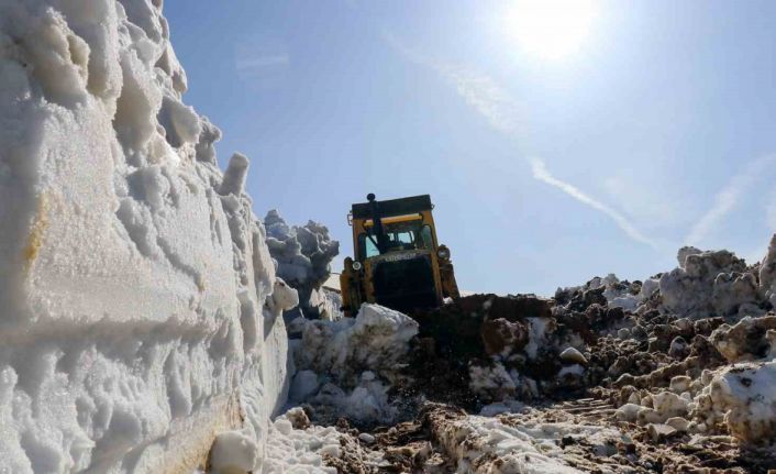 Bir haftadır devam eden çalışmalarda yolun 10 kilometrelik kısmındaki devasa kar birikintileri dozerle açılırken, eriyen kar suları nedeniyle yollar bir süre daha ulaşıma açılmayacak.