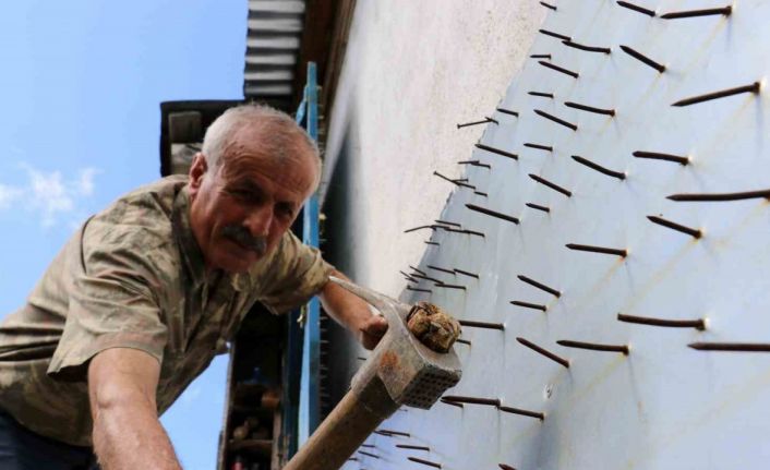 Yaptığı düzeneğin ayıya nasıl engel olduğunu anlatan Özcan, “Ayı yere koyduğum çivi çakılı kapının üzerine çıkamıyor. Çivi ve vida çakılı kapıya da vuramıyor. Çiviler eline geçiyor. Açamıyor bu sefer. Faydasını gördüm. Öncesinden gelip camları, pencereleri kırıp içeriye giriyordu. Hatta çatıları bile kırıp içeri girdi” diye konuştu.