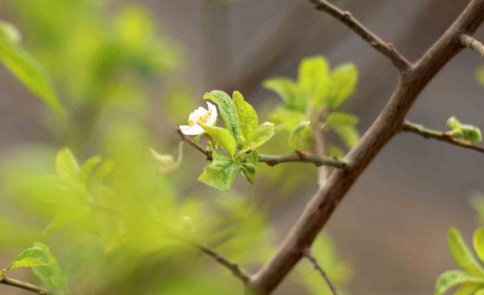 Gümüşhane’de yaz ayında meyvesi yenen fakat daha sonra yaprakları dökülen erik ağacı Eylül ayının ortasında yeniden yaprak verdi, çiçek açtı.