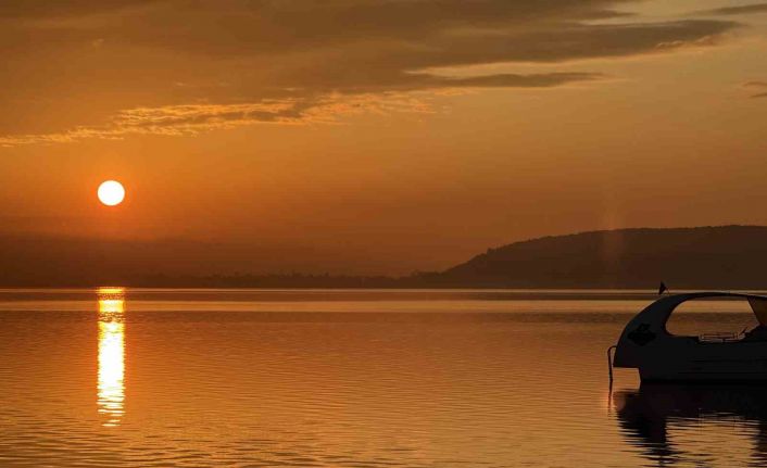 Sakarya’nın Sapanca Gölü’nde sabahın ilk saatleriyle birlikte gün doğumu manzarası ve güneşin göle yansıttığı yakamoz mest etti.