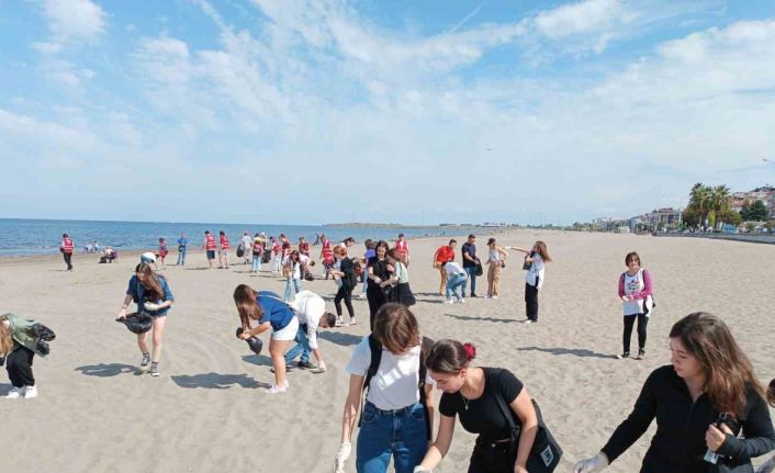 Yaklaşık 100 kişiden oluşan gönüllüler, sahildeki çöpleri toplayıp, farkındalık oluşturmaya çalıştılar.