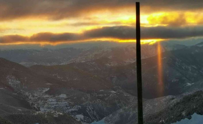 Denizden 2 bin 100 metre yükseklikteki Zigana Gümüşkayak Kayak Merkezi tesislerinden ve o bölgeden görülen doğa olayında yaklaşık 3 saat boyunca ışık tek bir noktadan Zigana Dağının yamaçlarına vurdu.