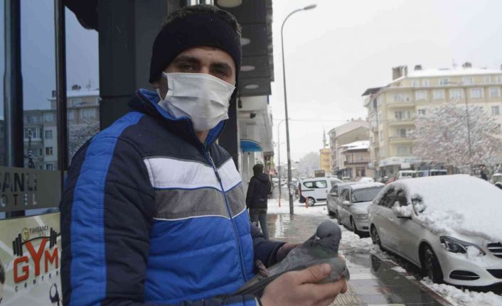 Kanadından yaralanan güvercini tedavi eden Veteriner Hekim Mustafa Sevilmiş, "İklim koşulları değiştiğinden dolayı sokak hayvanlarımız şu an aç. Tarım Orman Müdürlüğümüz yabani hayvanlar için gıda ihtiyaçlarını karşılamaya çalışıyor ama sokaktaki canlılarımız kediler, köpekler, kumrular, güvercinler veyahut evden kaçan muhabbet kuşları bakıma ihtiyaç duyuyor. Bunun için evlerimizin önlerine su ve yem koyabiliriz. Ancak sokakta bu günlerde sularının donmasından dolayı günlük ilave edilmeli. Sokak hayvanlarının vücut ısılarının normal gelmesi için beslenmesi gerekiyor. Yoksa bu soğuk havalar ölüme sebebiyet verebiliyor. Vatandaş olarak duyarlı olmamız gerekiyor. Ayaklardan soğuk alan sokak canlıları katalepsiye yani kas sertliğine gitmeye başlıyor. Bunun için yapmamız gereken şey duyarlı olmak. Bir kap yem bir kap su bir can demektir" diye konuştu.
