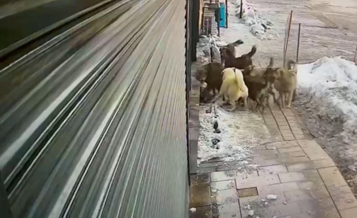 Hakkari’nin Yüksekova ilçesinde yiyecek bulamayınca yerleşim merkezine inen kurda köpekler saldırdı. O anlar ise saniye saniye kameralara yansıdı.