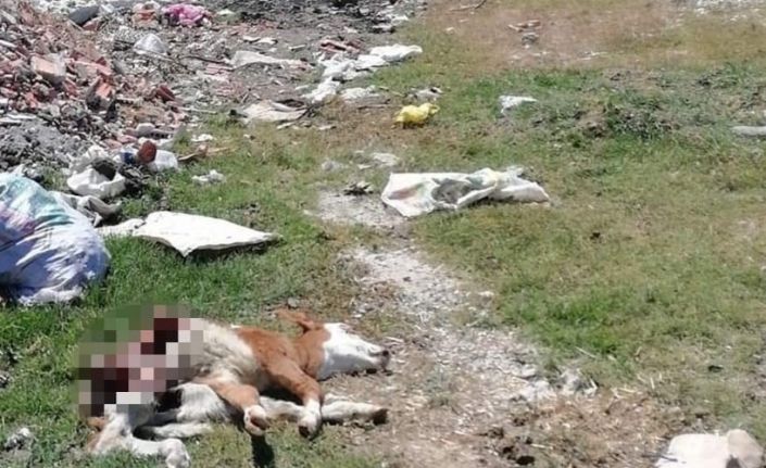 Hastalık sebebiyle ölen hayvanı, yol kenarına attılar