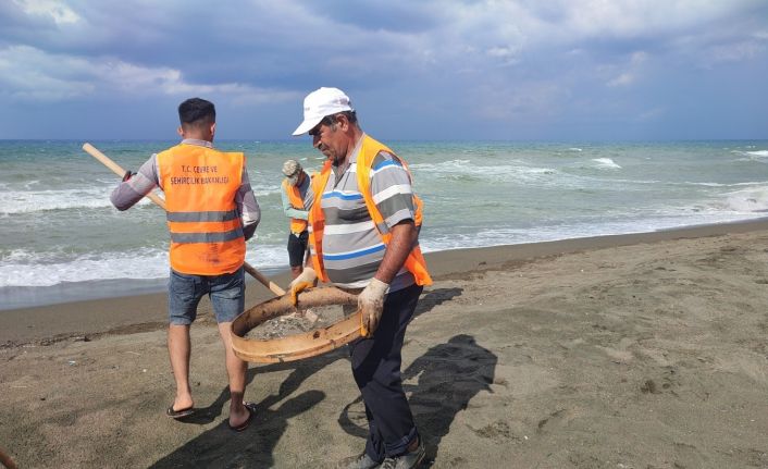 Çevre ve Şehircilik İl Müdürlüğü ekipleri, 2 Eylül’de başlayan temizlik çalışmalarında, kumsaldan topladıkları atıklı kumları eleyip çuvallara dolduruyor. Çalışmalar neticesinde sahildeki kirlilikte büyük oranda azalma olduğu gözlendi.